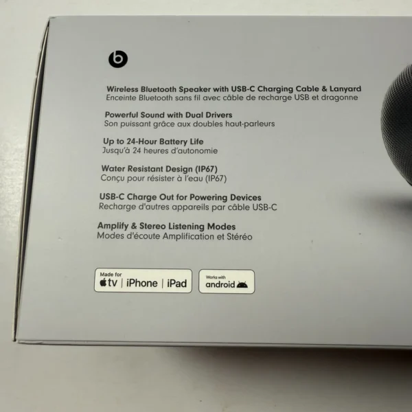 The Beats Pill is a sleek, capsule-shaped portable wireless speaker that packs serious sound and convenience into a stylish matte black package. Its upgraded racetrack woofer delivers 90% more air displacement, resulting in room‑filling bass and enhanced tonality, supported by a redesigned tweeter for crisp highs and rich midrange