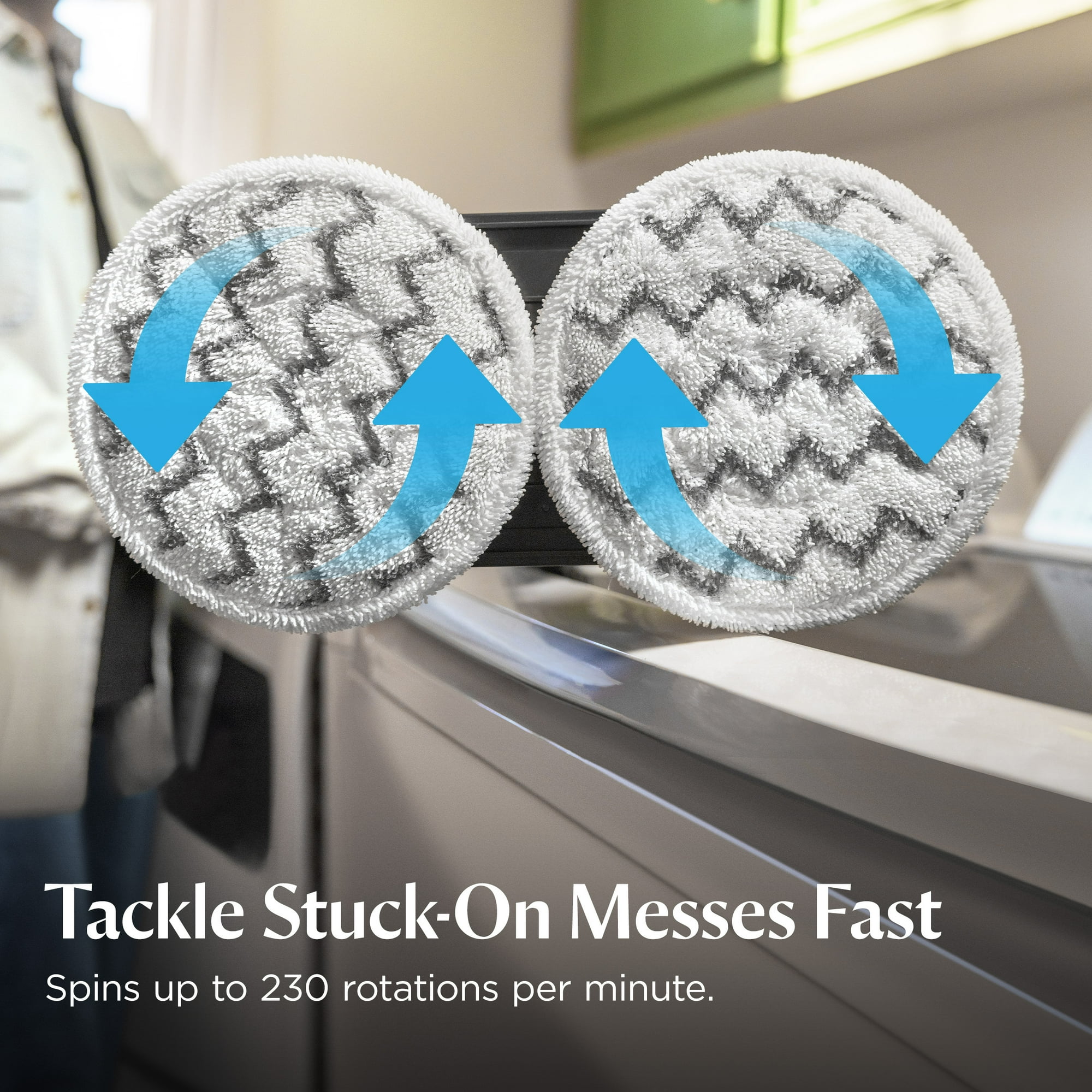• Rotating scrubbing mop pads