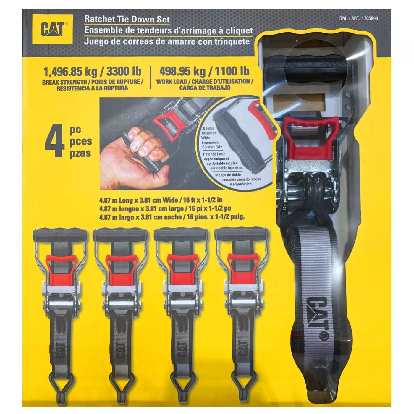 CAT Heavy Duty Ratchet Caterpillar Tie Down Strap Handle 4 Pcs Set