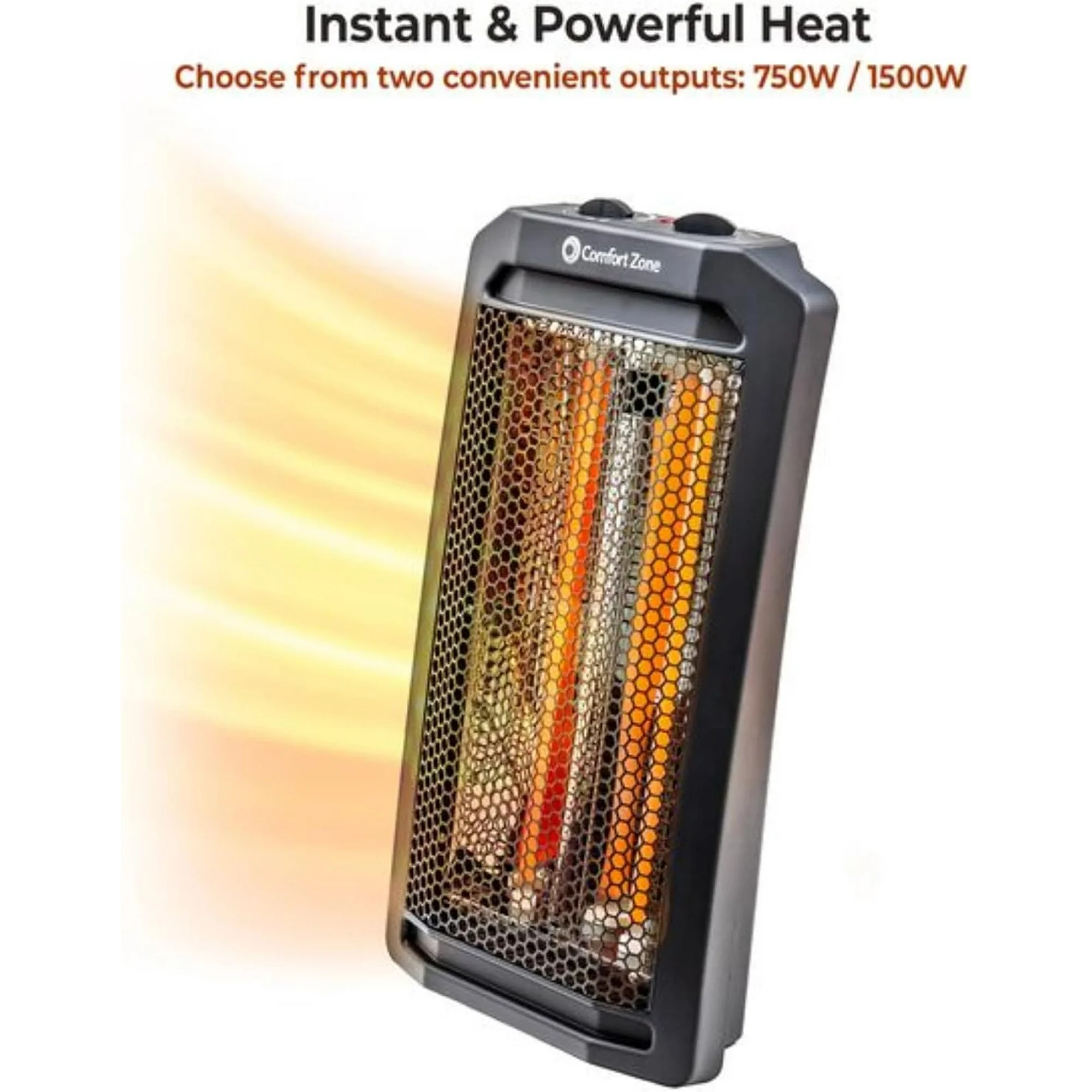 Comfort Zone Infrared Tower Heater, 1500W, Thermostat, 2 Settings