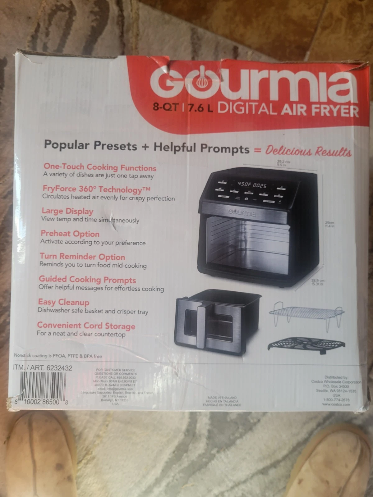 Gourmia 8 Qt Digital Window Air Fryer with 12 One-Touch Presets,