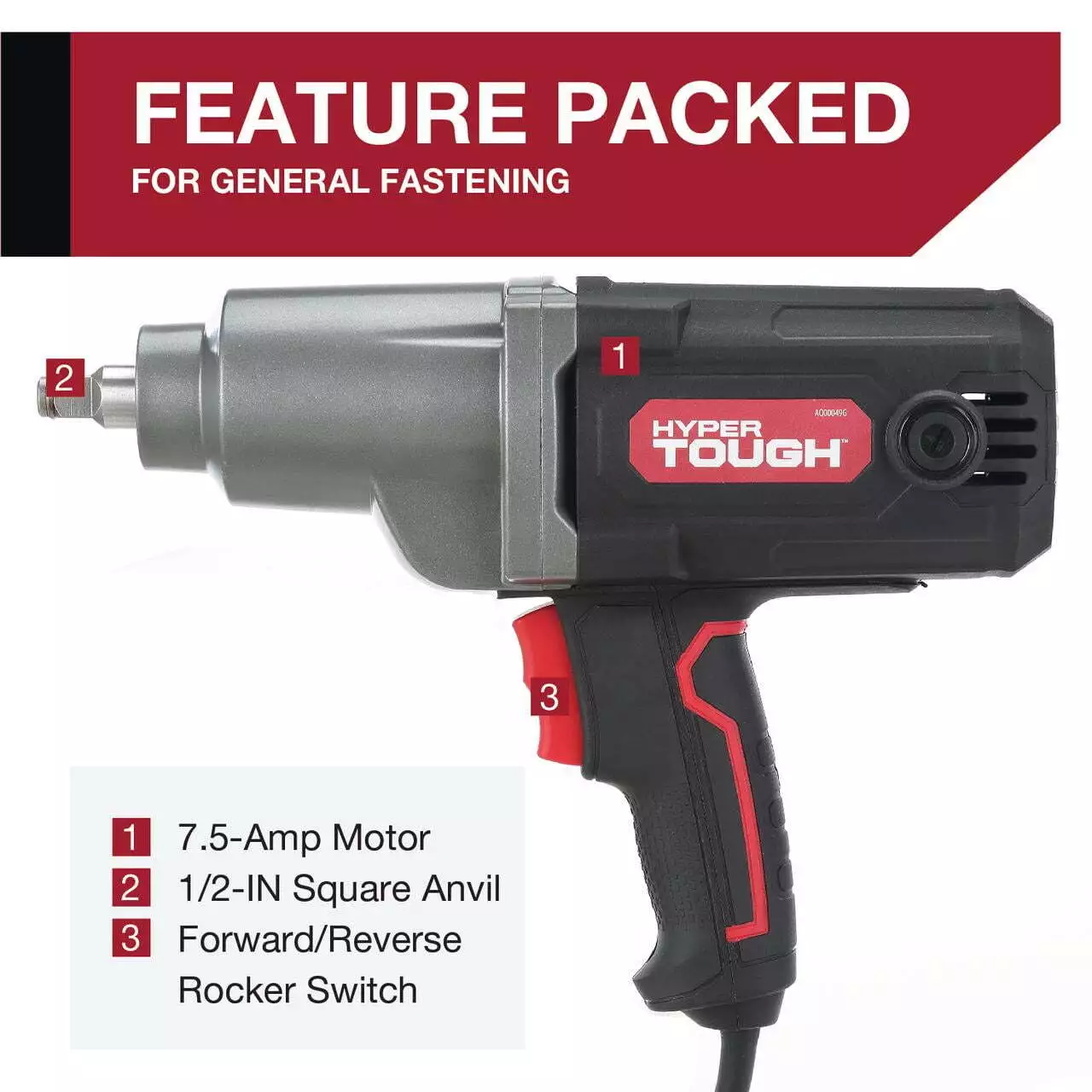 Hyper Tough 7.5A Corded Impact Wrench with 1/2 inch Anvil, AQ00049G, 120 Volts