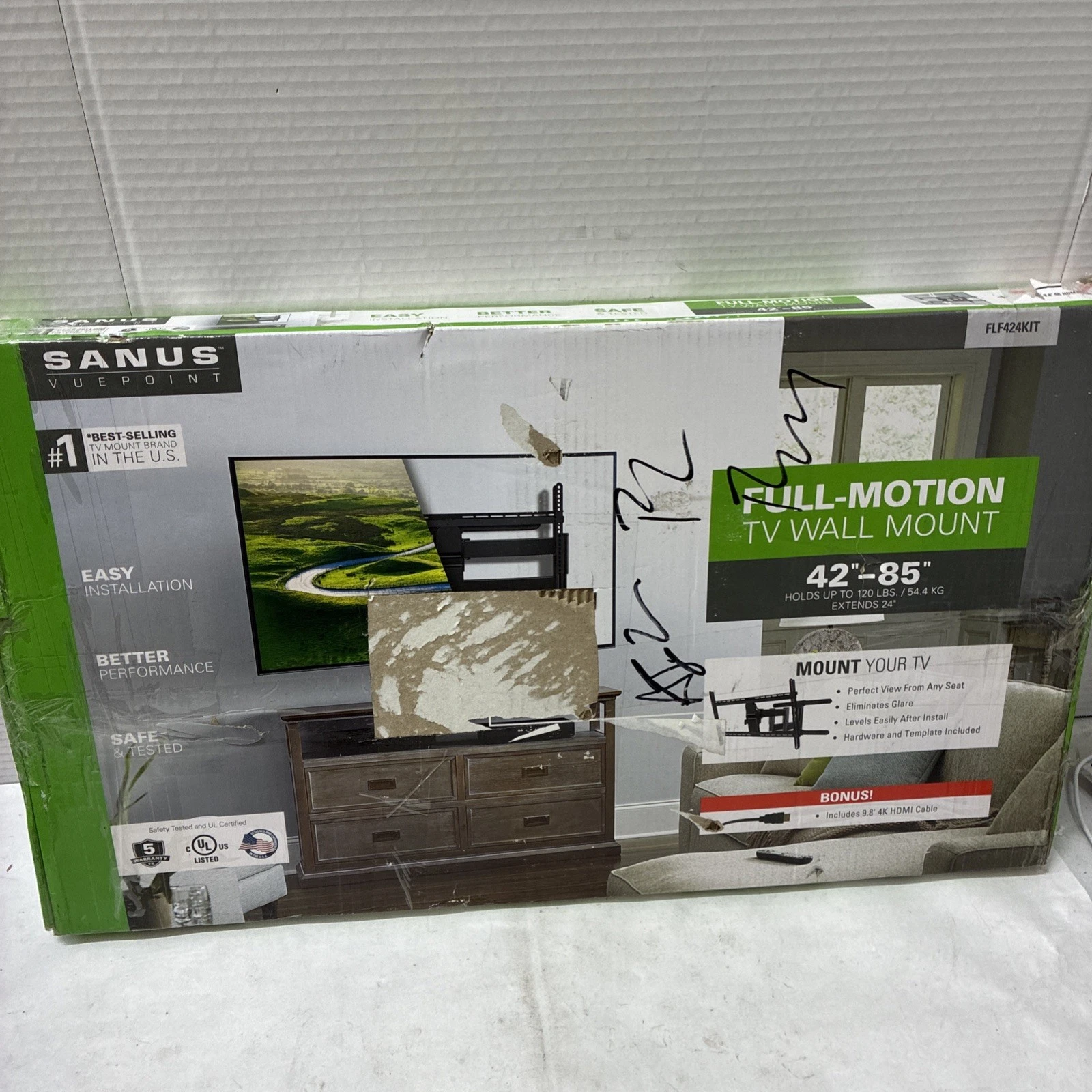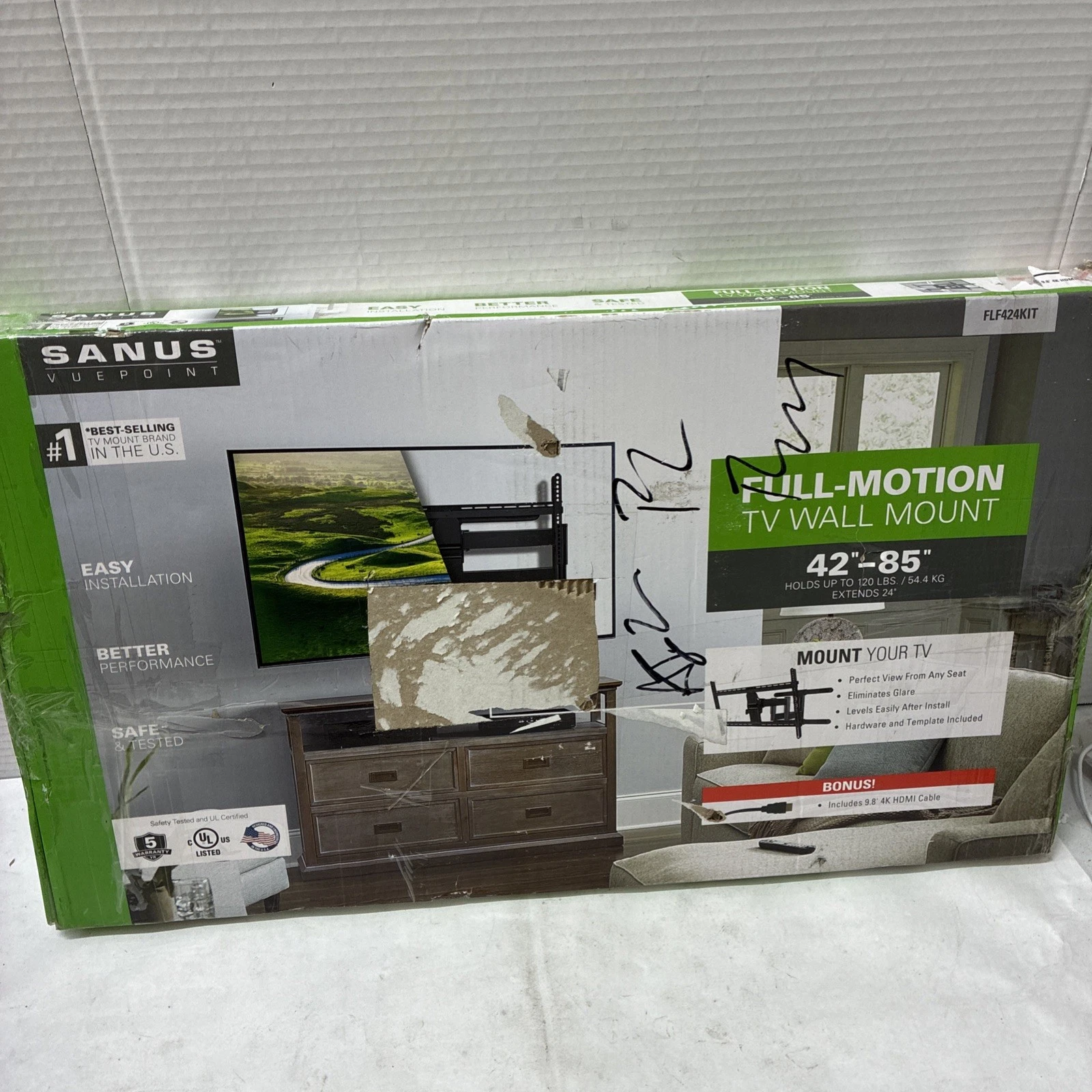 SANUS VuePoint FLF424KIT Full-Motion TV Wall Mount for TVs 42-85 up to 120 lbs