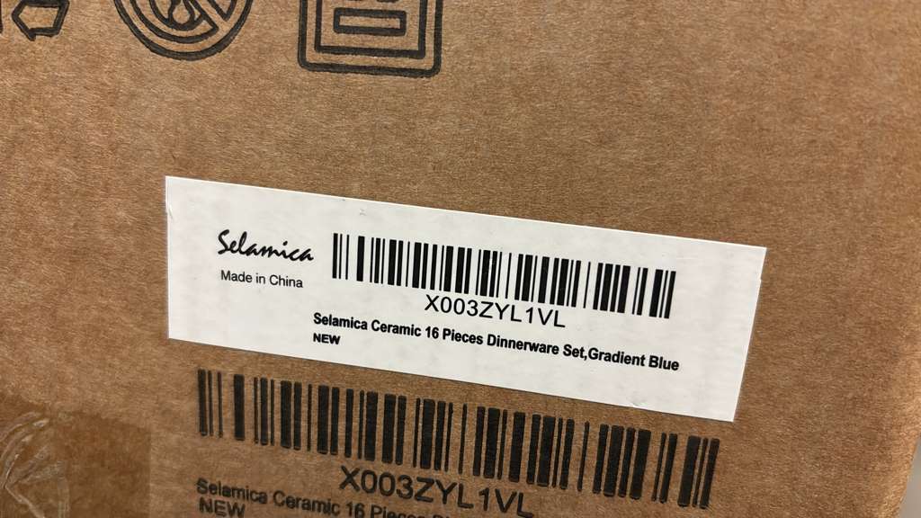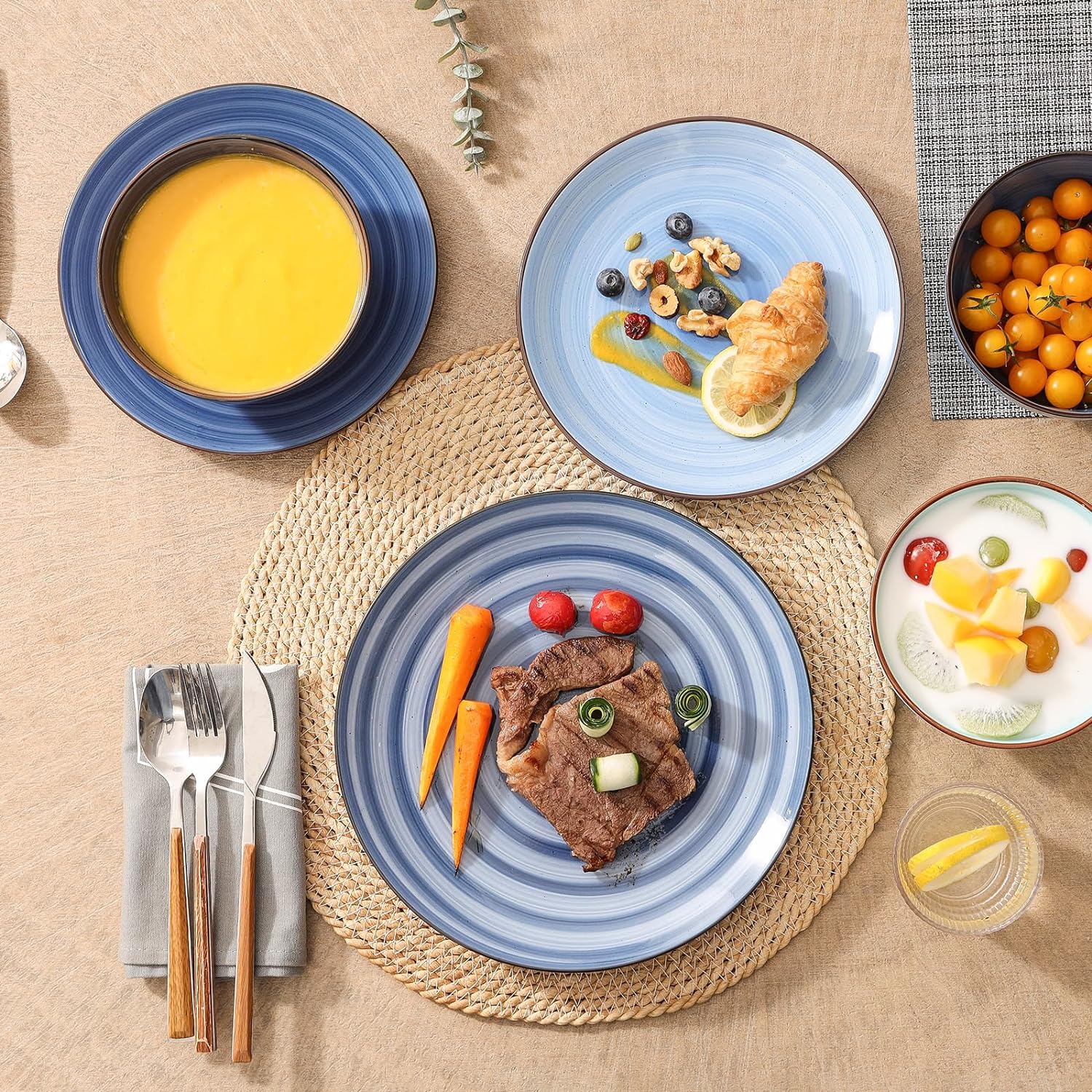 Selamica Ceramic 16-Pieces Dinnerware Set, Ceramic Dishes Set for 4, Kitchen Plates and Bowls Sets, Dinner Plates Set, Spray Black Dots, Gradient Blue